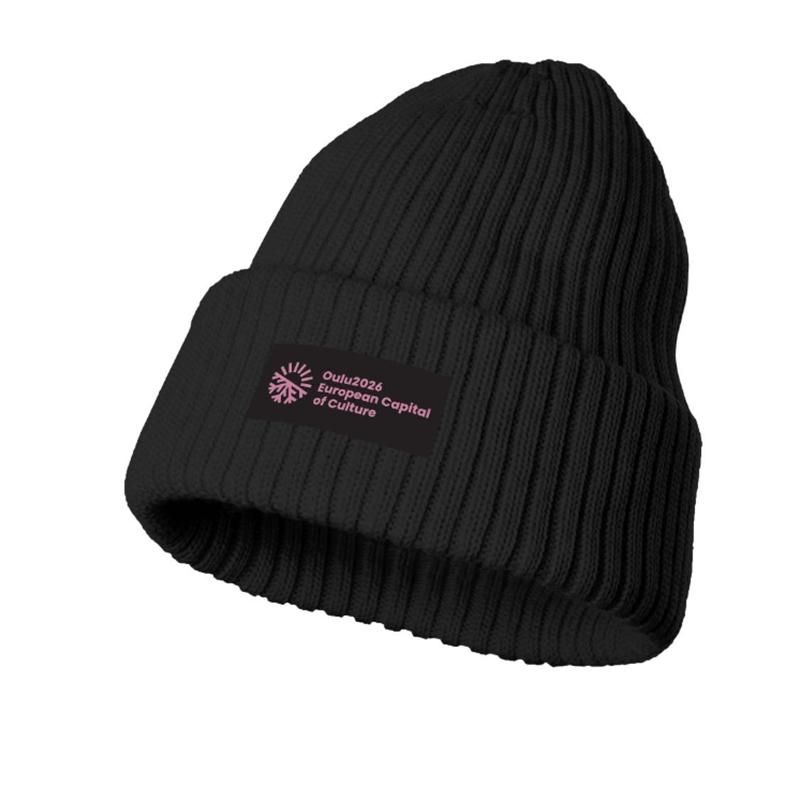Kotimainen 100% merinovillapipo, kudottu saumamerkki käänteessä.
